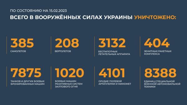 3 года назад«Орловские новости» продолжают следить за главными новостями о специальной операции на Украине. Мы собрали самую актуальную информацию в стране, мире и в нашем регионе. Оперативные новости Как сообщает Минобороны РФ, на Купянском направлении ударами армейской авиации, огнем артиллерии «Западной» группировки войск нанесено поражение скоплению живой силы и техники 14-й механизированной бригады ВСУ и 103-й бригады территориальной обороны в районах населенных пунктов Двуречная и Котляровка Харьковской области. Кроме того, в районах населенных пунктов Крахмальное, Масютовка, Першотравневое, Тимковка Харьковской области и Новоселовское ЛНР уничтожены 8 диверсионно-разведывательных групп ВСУ. Общие потери противника за сутки на данном направлении составили до 100 украинских военнослужащих убитыми и ранеными, 2 боевые бронированные машины, 4 автомобиля и гаубица Д-30. Также в районе населенного пункта Ветеринарное Харьковской области уничтожен склад боеприпасов 113-й бригады территориальной обороны. На Красно-Лиманском направлении ударами армейской авиации, огнем артиллерии группировки войск «Центр» нанесено поражение подразделениям 67-й, 92-й механизированных и 25-й воздушно-десантной бригад ВСУ в районах населенных пунктов Червоная Диброва, Стельмаховка ЛНР и Ямполовка ДНР. За сутки на данном направлении уничтожено до 65-ти украинских военнослужащих, боевая машина пехоты, 2 боевые бронированные машины, 3 автомобиля, 2 самоходные гаубицы «Гвоздика» и установка РСЗО «Град». На Донецком направлении в ходе продолжения наступательных действий и огня артиллерии «Южной» группировки войск за сутки уничтожено до 190 украинских военнослужащих, 2 боевые машины пехоты, бронетранспортер, 3 автомобиля, гаубица «Мста-Б» и артиллерийская система М777 производства США. На Южно-Донецком и Запорожском направлениях огнем артиллерии и тяжелых огнеметных систем группировки войск «Восток» нанесено поражение подразделениям ВСУ в районах населенных пунктов Угледар и Новоселка ДНР. Потери противника за сутки на данном направлении составили свыше 60-ти украинских военнослужащих, 2 танка, 4 боевые машины пехоты, 2 боевые бронированные машины, гаубицы Д-20 и Д-30, а также самоходная гаубица «Гвоздика». На Херсонском направлении в рамках контрбатарейной борьбы за сутки уничтожены самоходная гаубица «Гвоздика» и гаубица Д-30. Армейской авиацией, ракетными войсками и артиллерией группировок войск ВС РФ Федерации нанесено поражение 87-ми артиллерийским подразделениям ВСУ на огневых позициях, живой силе и военной технике в 112-ти районах. Средствами противовоздушной обороны за сутки сбито 8 реактивных снарядов системы залпового огня «HIMARS», а также уничтожено 11 украинских беспилотных летательных аппаратов в районах населенных пунктов Софиевка, Поповка, Голиково, Новокраснянка, Кременная, Житловка, Червонопоповка ЛНР. Всего с начала проведения специальной военной операции уничтожены: 385 самолетов, 208 вертолетов, 3132 беспилотных летательных аппарата, 404 зенитных ракетных комплекса, 7875 танков и других боевых бронированных машин, 1020 боевых машин реактивных систем залпового огня, 4101 орудие полевой артиллерии и минометов, а также 8388 единиц специальной военной автомобильной техники.