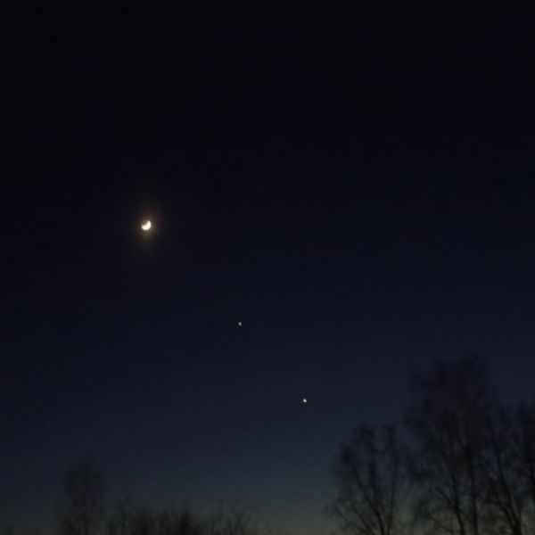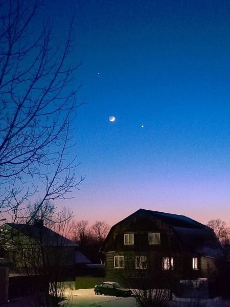 Это необычное астрономическое явление еще называют парадом планет. В четверг, 23 февраля, три небесных тела выстроились в единую линию.