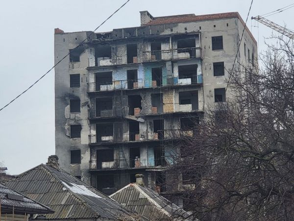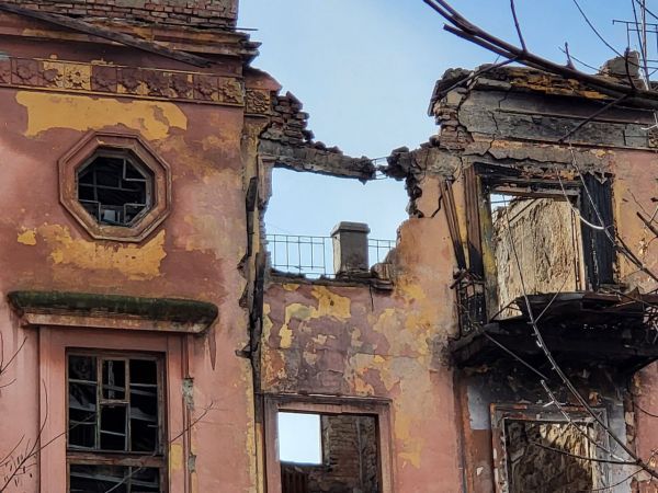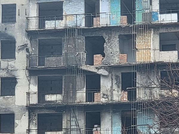 «Азовсталь» у всех на слуху. Улица Азовстальская ведет к комбинату. Дома на ней пострадали больше всего. Пустые проемы, отсутствия крыш, зияющие выщерблены и пробоины.