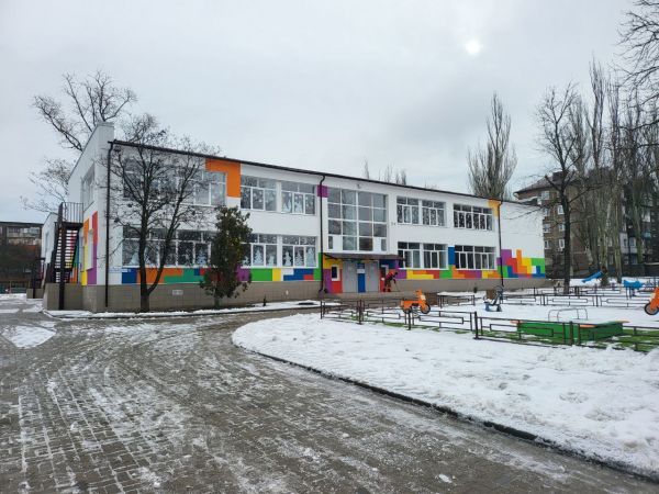 Начинаю фотографировать. Замечаю, что на каждом балконе выставлены стопки новых кирпичей. Подхожу поближе. Вижу, что на объектах активно работают строители, начинают приводить их в порядок. Это очень хороший пример, который характеризует жизнь в городе сейчас. Да, при желании все еще можно снять множество разрушенных и поврежденных зданий. Но новых объектов или тех, которые уже восстановили, не меньше. Словам можно было бы не поверить, но тут есть более важный аргумент — люди. В мае – июне в городе оставалось очень мало народу, а сейчас, чтобы увидеть, как Мариуполь оживает, достаточно потратить 10 минут. Проехать по улицам города, постоять в уже начинающих образовываться то там, то здесь пробках. Увидеть множество людей, идущих по своим делам, открывающиеся магазины, уличную торговлю. Если бы не попадающиеся следы войны, то Мариуполь вполне можно было бы сравнить, например, с Советским районом города Тулы. Первый объект — детский сад. Тут говорить нечего. Фотографии скажут лучше.